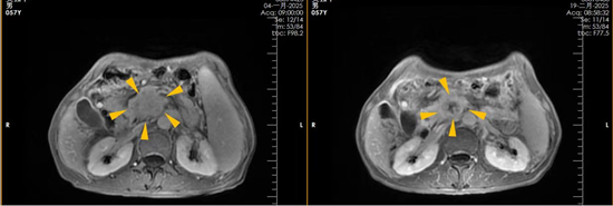 “肿瘤不仅侵犯了门脉和脾静脉,还局部包绕肠系膜上动脉与静脉,胰腺体尾出现萎缩,并伴有区域门脉高压和多发淋巴结肿大。病灶复杂,部分转移无法排除。”面对这样复杂的病情,河北一洲肿瘤医院副院长清水翔星教授立即组织多学科联合会诊(MDT),为患者寻找新的可能。